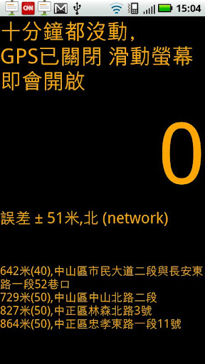 ps:程式在背景仍使用GPS,會消耗您手機的電力,我們會在您十分鐘內未移動超過500公尺的狀況下,主動關閉GPS並提示您。